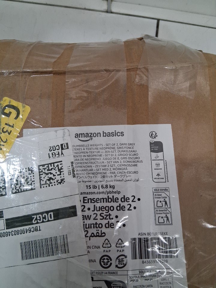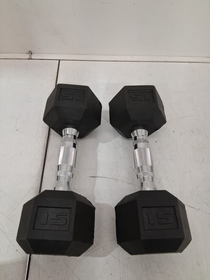 2pk AMAZON BASICS CAST IRON HEX DUMBELL WEIGHT - 15LB - BLACK