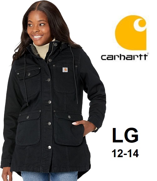 WoMEN'S CARHARTT Loose Fit Weathered Duck Coat - Large 12-14 - BLACK (MODEL: OC5512-W/105512)