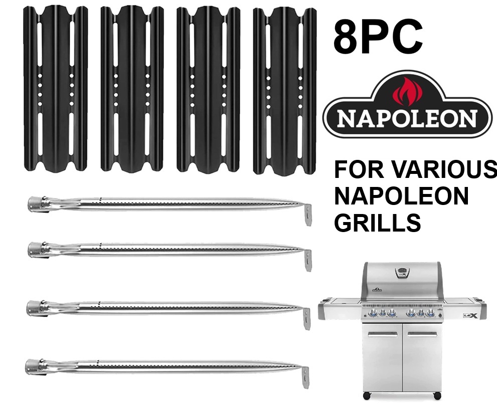 8PC BMMXBI Heat Shield Plates and Burner Tube Replacement Parts - Fitment is for various napoleon grills - 16" x 6" - silver (model: