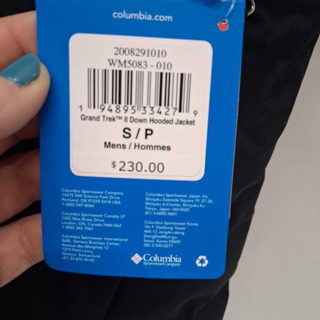 MENS COLUMBIA GRAND TREK II DOWN HOODED JACKET - SMALL - BLACK (style: wm5083-010)
