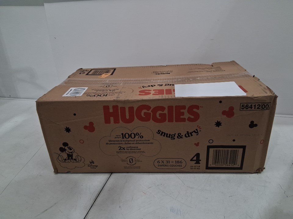 186pk huggies snug and dry diapers - size 4 - 22lb to 37lb - disney mickey mouse