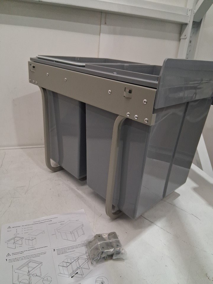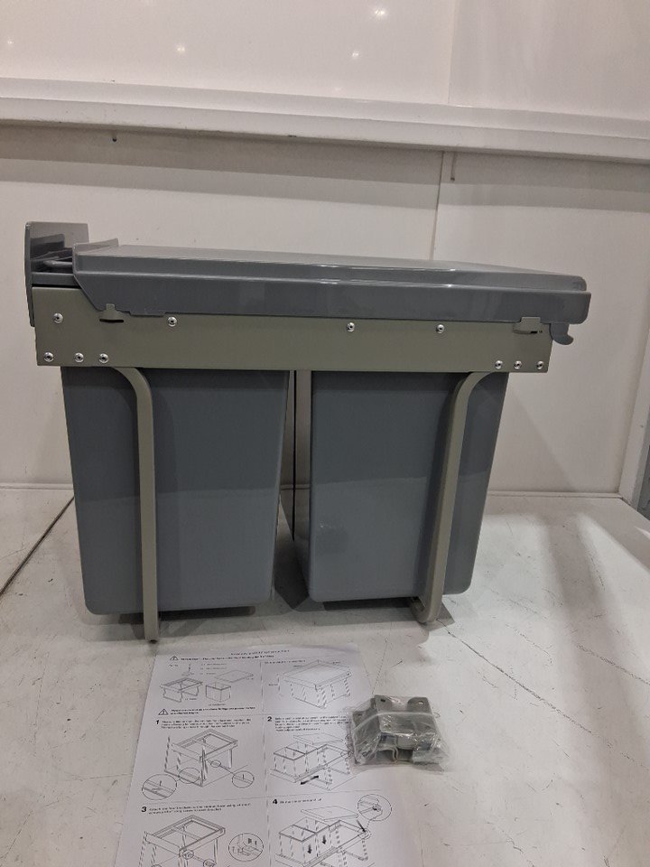 GOOFCXO Dual Pull Out/Slide Out Garbage Bin/can with Lid and Soft-Close Rail - 10L and 20L - grey