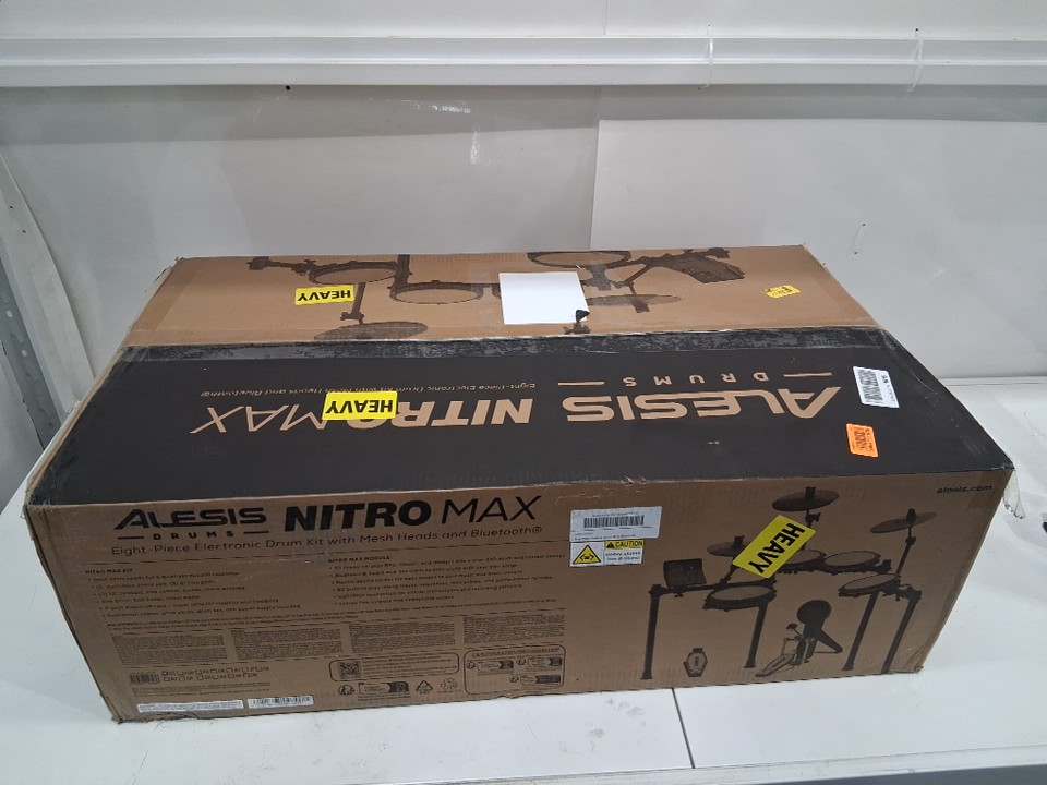 8pc Alesis Nitro Max Electronic Drum Kit - Mesh Heads, Bluetooth, 10" Dual-Zone Snare, 440 BFD Sounds, 32 Kits, USB/MIDI, and Drumeo Access - black (Model: NITROMAXKITXUS)