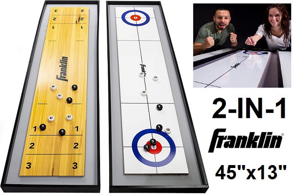 FRANKLIN SPORTS 2-IN-1 SHUFFLEBOARD TABLE AND CURLING SET - 45" X 13" (MODEL: 54130X)