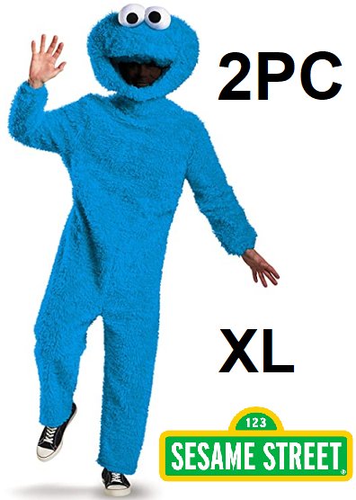 2PC ADULT DISGUISE SESAME STREET FULL-PLUSH COOKIE MONSTER COSTUME - EXTRA LARGE - BLUE