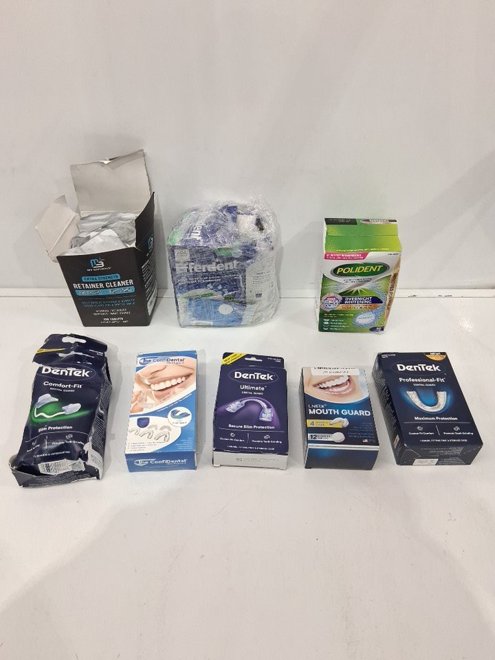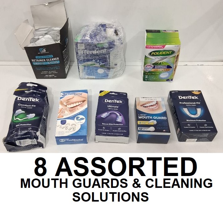 8 ASSORTED MOUTH GUARDS & CLEANING SOLUTIONS - VARIOUS BRANDS