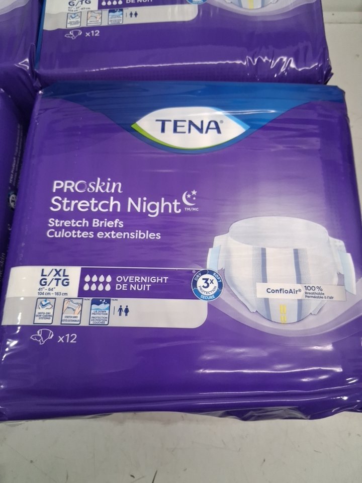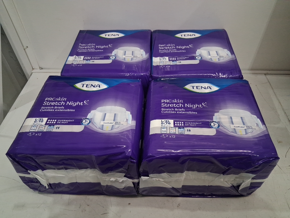 48pk tena proskin stretch night overnight briefs - large/extra large - white