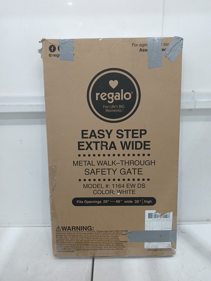 REGALO EASY STEP EXTRA WIDE METAL SAFETY GATE - 30" x 29" - 49" - WHITE (MODEL: 1164EwDS)