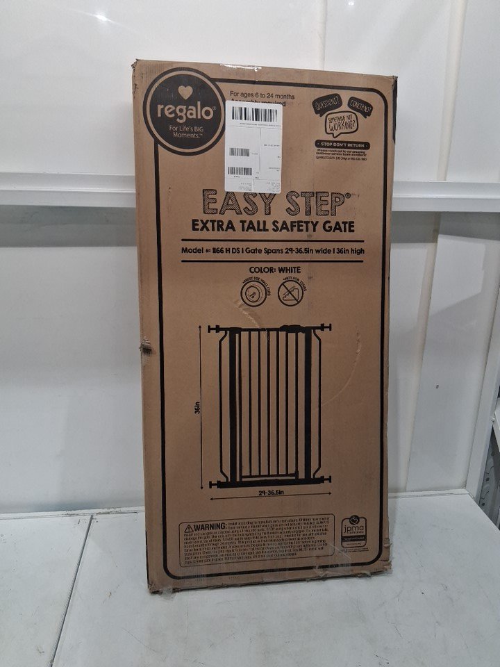 REGALO EASY STEP WALK-THRU METAL SAFETY GATE - 36" x 29" to 36.5" - WHITE - (MODEL: 1166HDS)