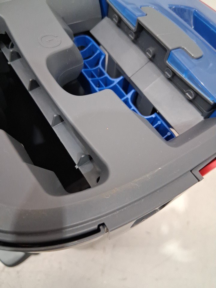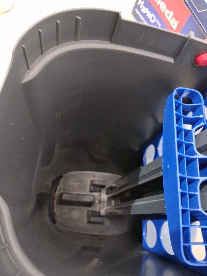 please note the item is missing the flat mop head attachment. the item also has some markings from previous use. see photos. see photos.