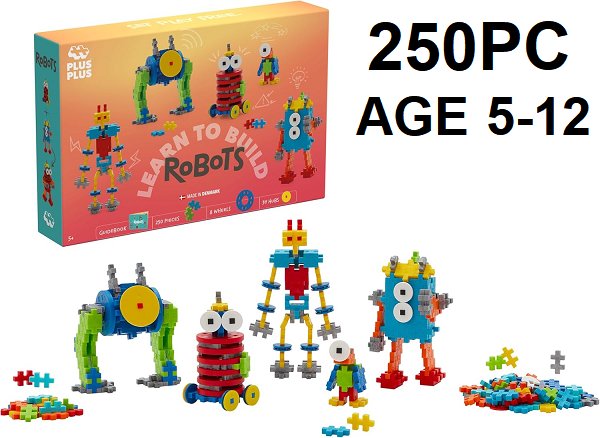 250PC PLUS PLUS Learn to Build Robots Interlocking Building Blocks and Construction Set - AGES 5-12