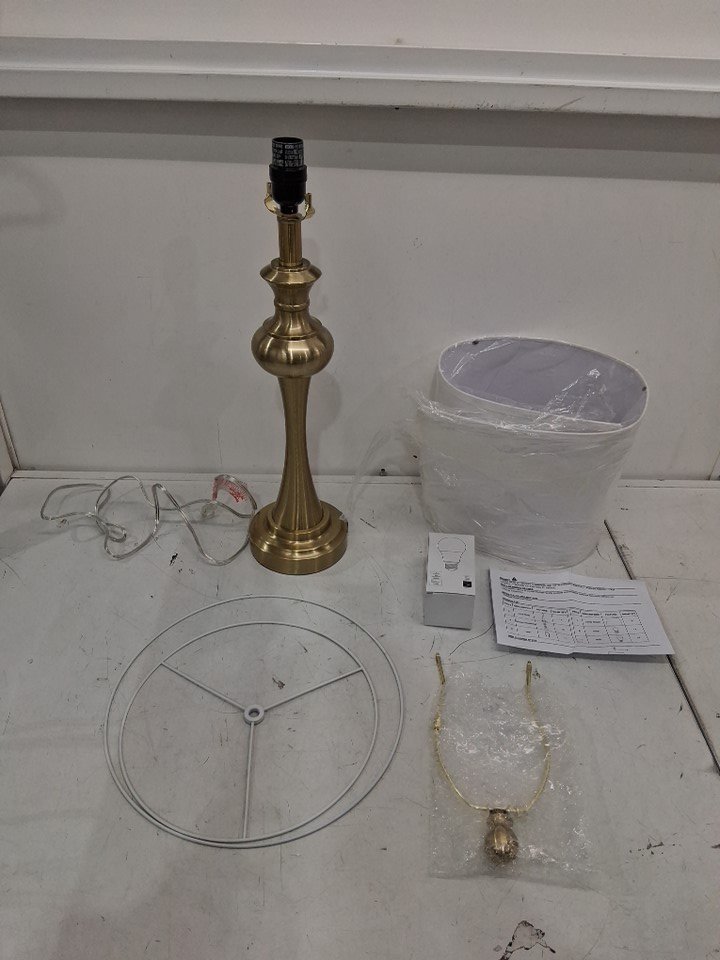 Traditional Style Antique Brass Fabric Drum Table Lamp with 60W Light Bulb - 26" - 60 Watts E26 Bulb - Gold/Tan