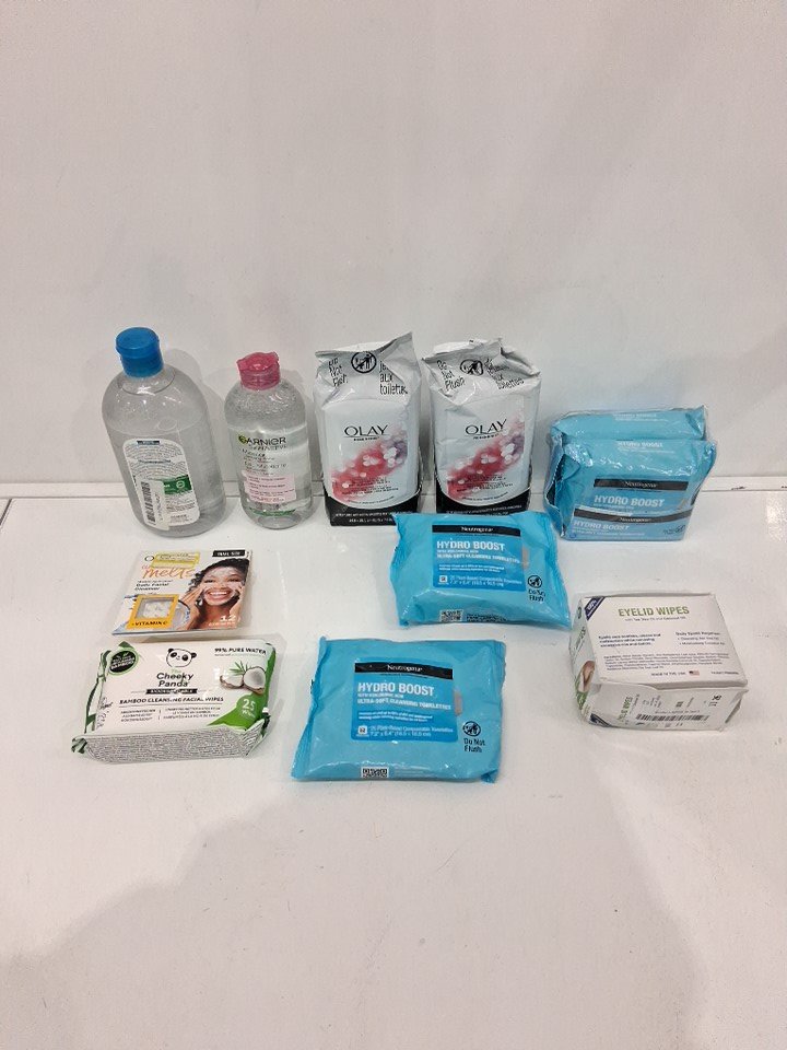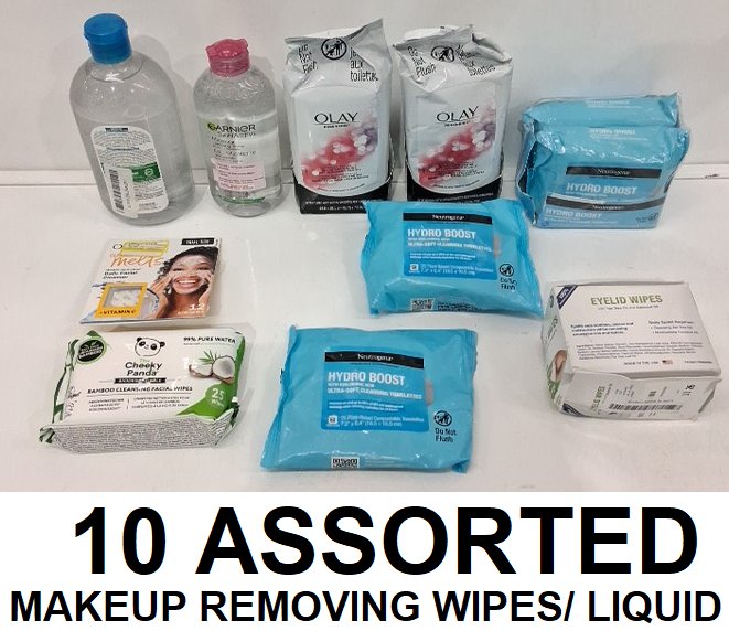 10 ASSORTED MAKEUP REMOVING WIPES/ LIQUID - VARIOUS BRANDS/ SIZES