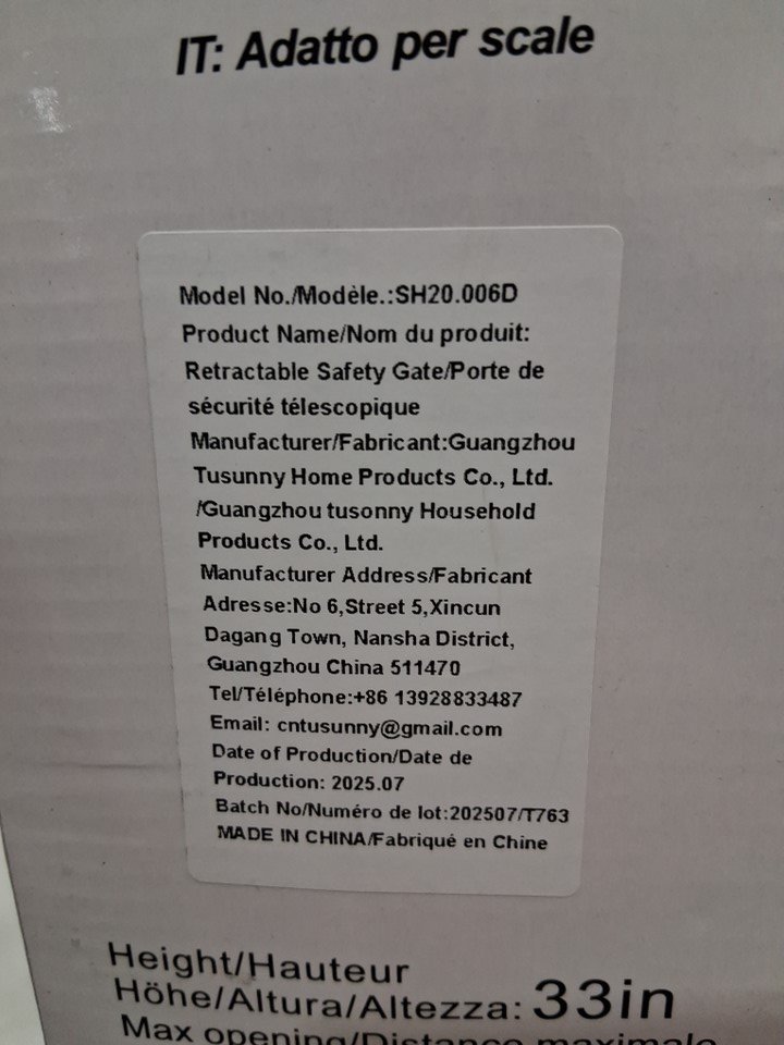 2pk DEARLOMUM RETRACTABLE EXTRA WIDE CHILD/PET SAFETY GATE - 33" tall - EXTENDS UP TO 55" - WHITE (MODEL: SH20.006D)