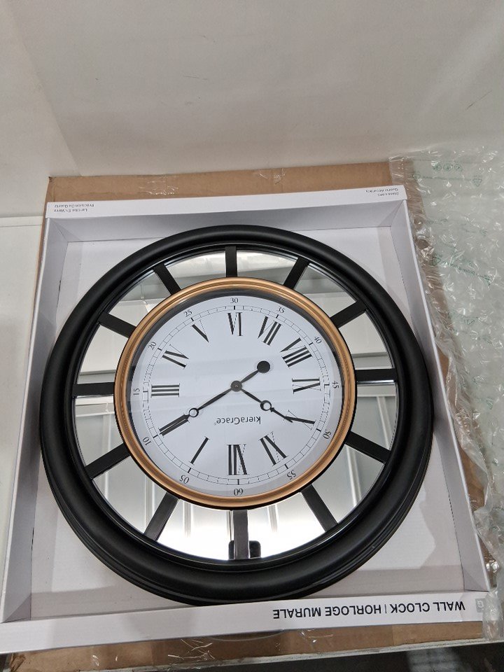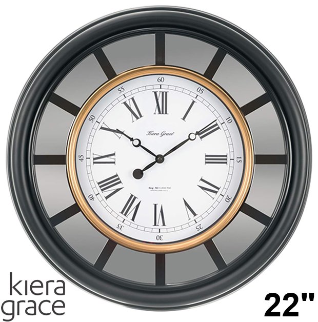 Kiera Grace Milan Large Espresso Battery Operated Wall Clock - 22" - gold/black (model: HO87493-1 MILAN)
