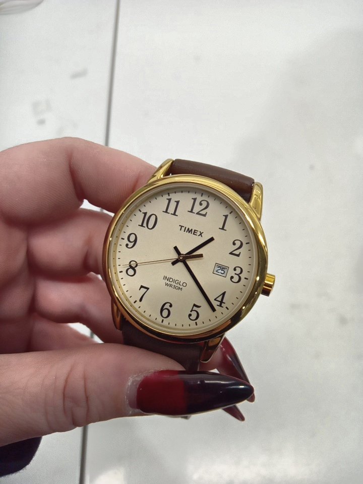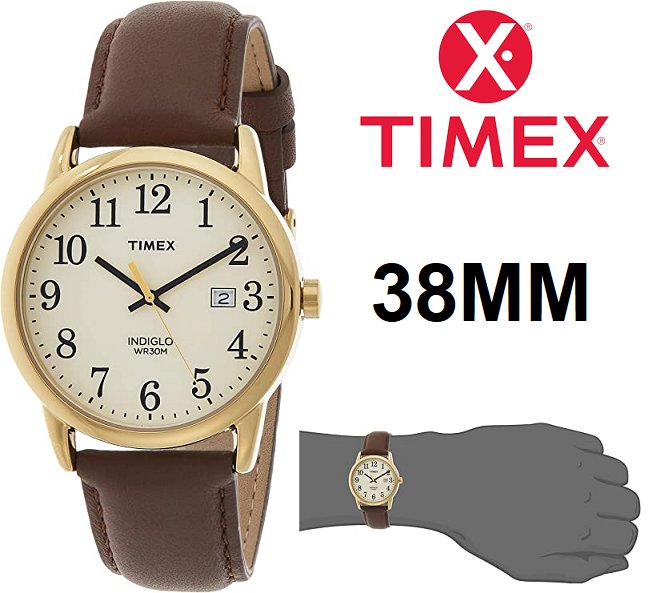 MEN'S TIMEX EASY READER LEATHER STRAP WATCH - 38MM - GOLD/BROWN (MODEL: TW2P75800)