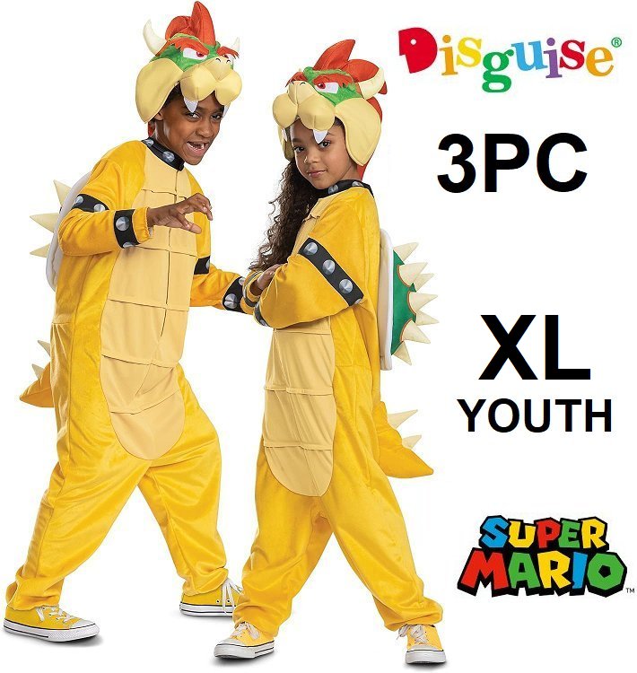 3pc kid's unisex disguise super mario hooded bowser character costume - extra large - yellow