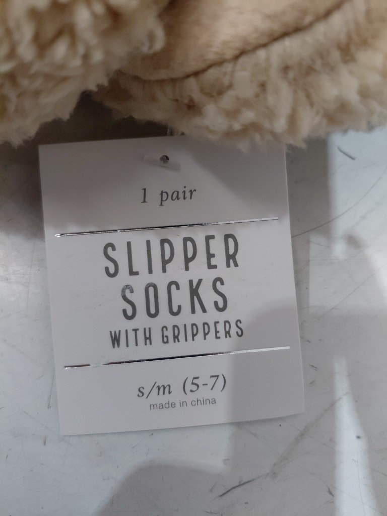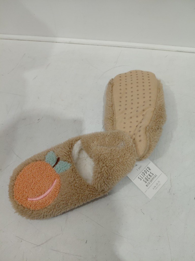 women's fleece slipper socks with grippers - 5-7 - brown/peach