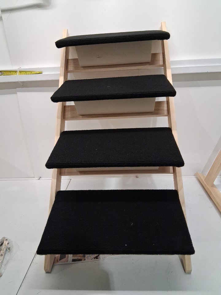 UPGRADED FOLDABLE Durable Wooden Pet Stairs - 150LB MAX - 4 STEPS - WOOD/BLACK - (MODEL:BK-5098)
