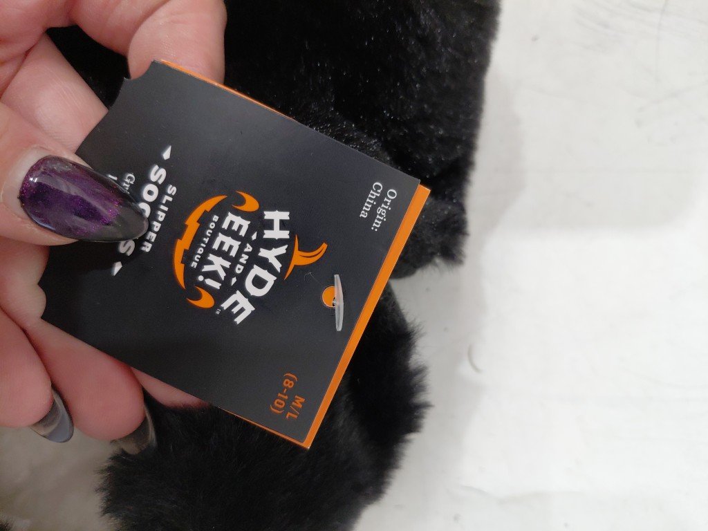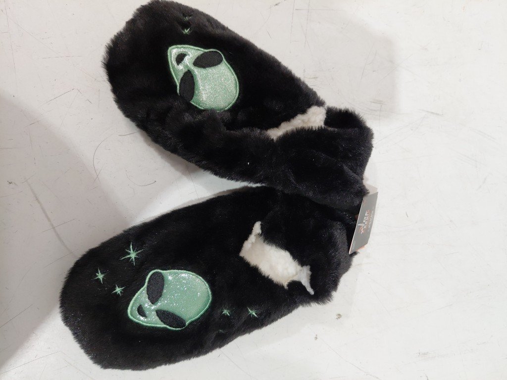 women's hyde & eek slip on sock slippers with grippers - 8-10 - black/alien