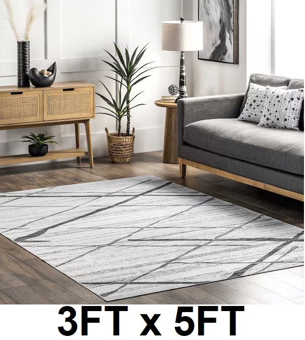 Trellis Stripes Machine Washable Area Rug - 3FT X 5FT - GREY - ( STYLE: BIRV68A-305 )