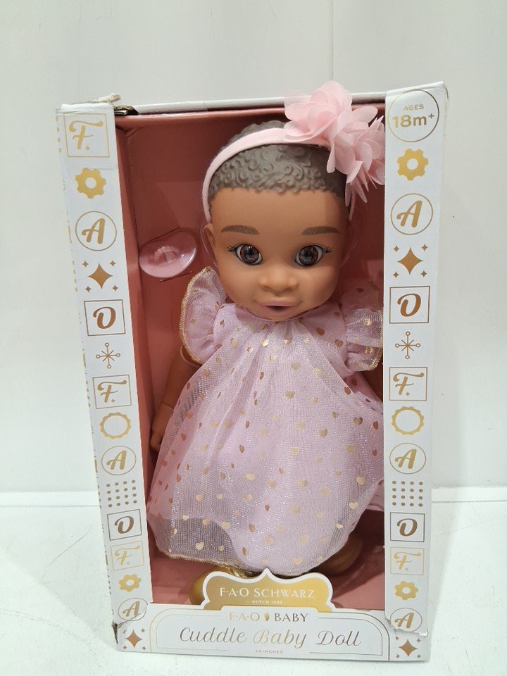 FAO Schwarz Cuddle Baby Doll - 14" - Dark Brown Hair
