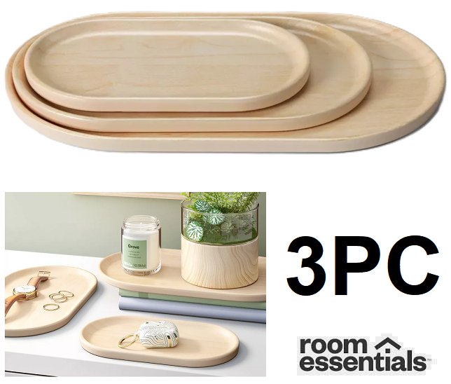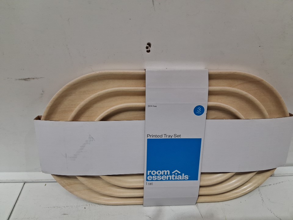 3pk Room Essentials PRINTED Melamine Tray SET - BEIGE/BROWN