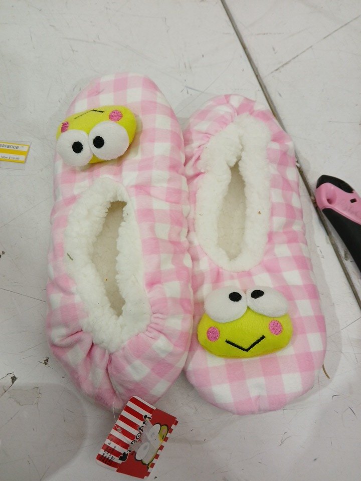 women's hello kitty & friends keroppi Gingham Plaid Slipper Socks With Grippers - 8-10 - pink/white