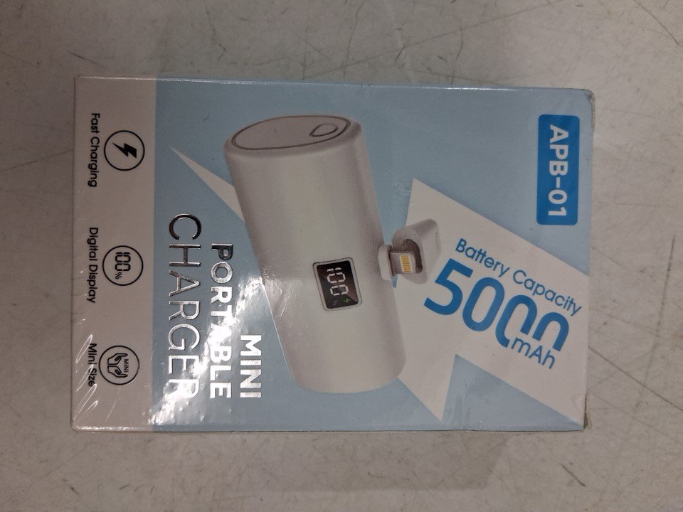 RIENOO Portable Rechargeable power bank for iPhone with Built-In Lightning Port with Fast Charge - USB-C Rechargeable - 5000mAh - White (Model: APB-01)