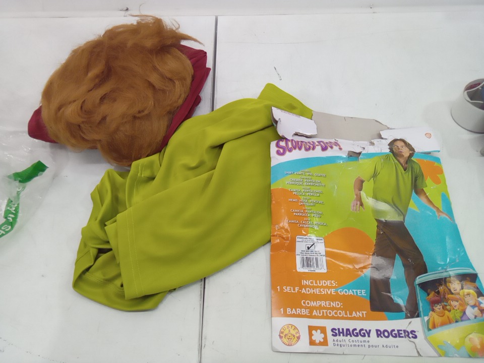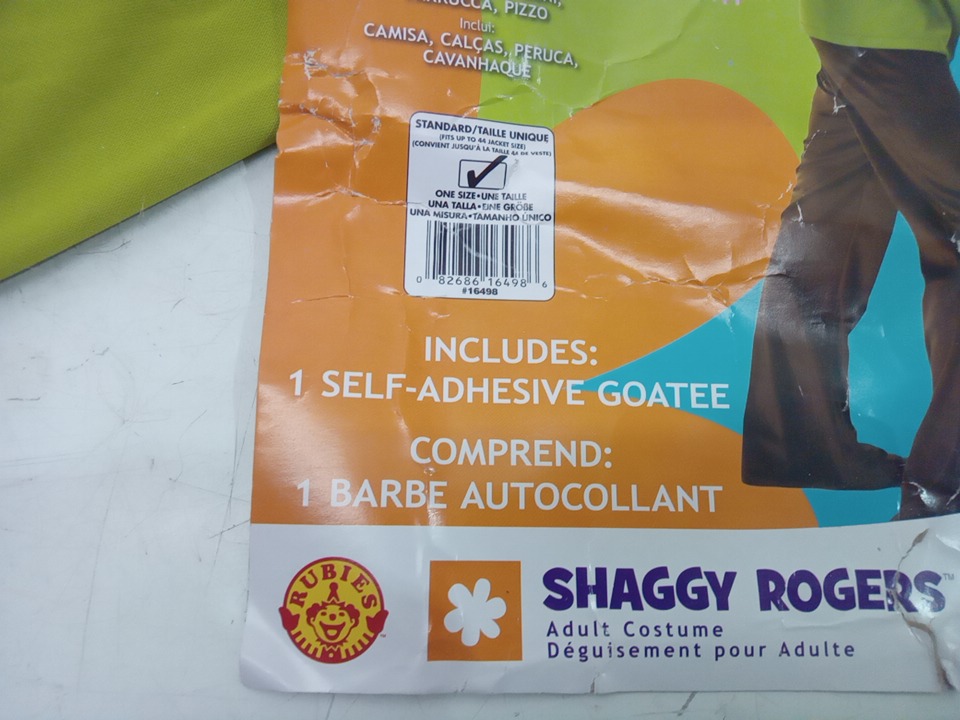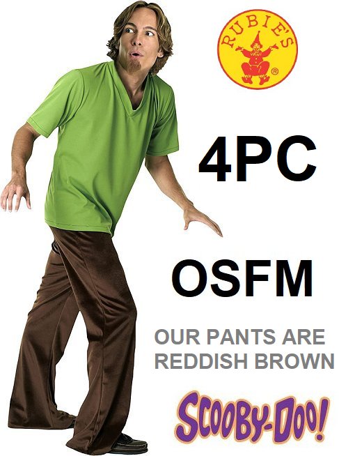 4PC MEN'S RUBIES COSTUMES DELUXE SCOOBY-DOO ''SHAGGY ROGERS'' WITH SHIRT, PANTS, WIG & GOATEE - OSFM - GREEN/REDDISH BROWN