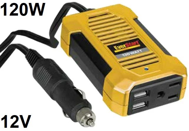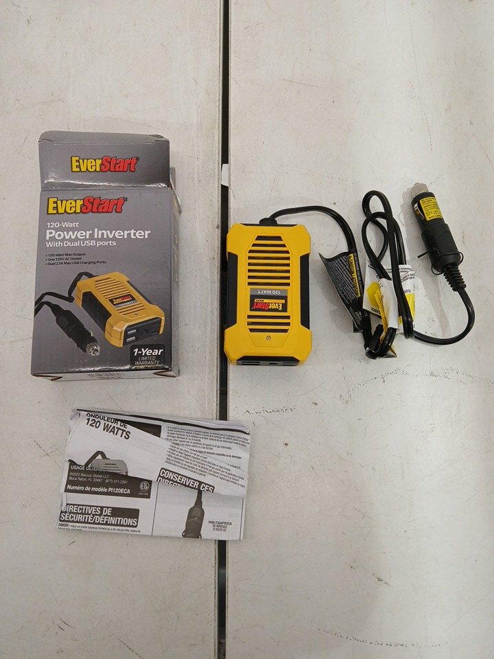 Everstart Power Inverter With USB ports - 12v - 120W - black/yellow (model: pi120seca)