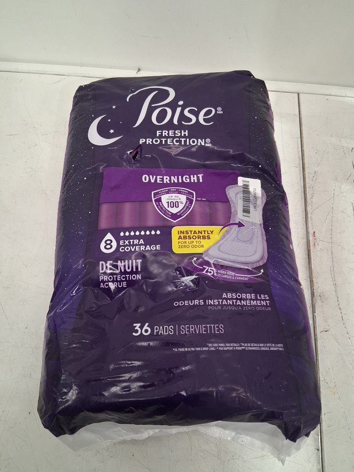 36PK Poise Overnight EXTRA COVERAGE BLADDER LEAKAGE PROTECTION Incontinence Pads - All Night 8