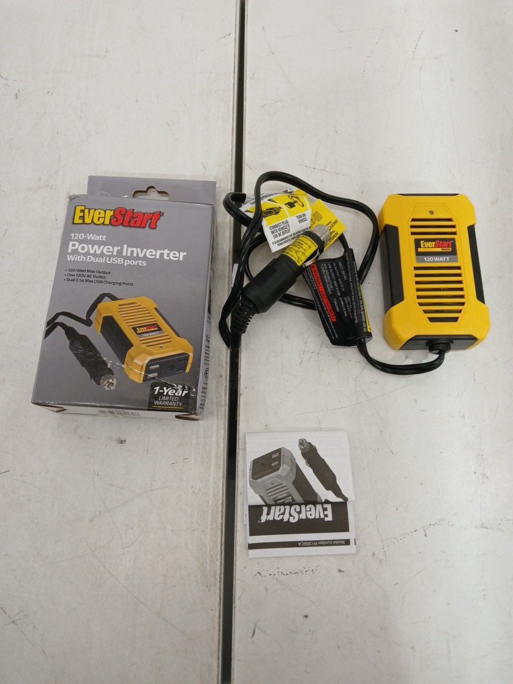 Everstart Power Inverter With USB ports - 12v - 120W - black/yellow (model: pi120seca)