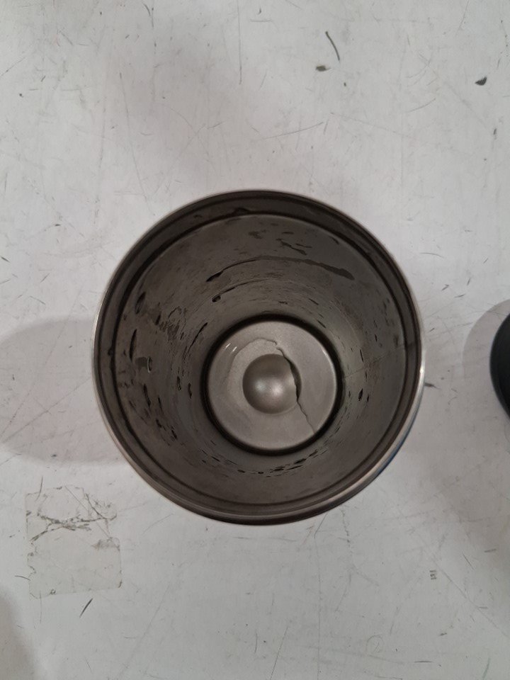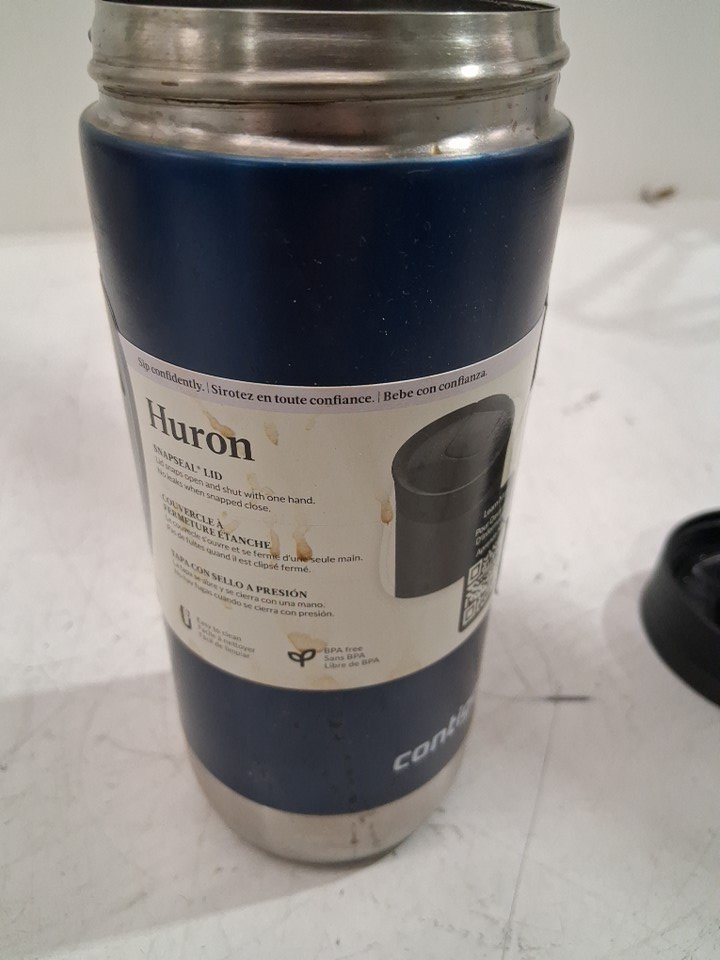 product has some coffee stains on the outer surface of the product and upon inspection there was some water located inside the product and on the lid.