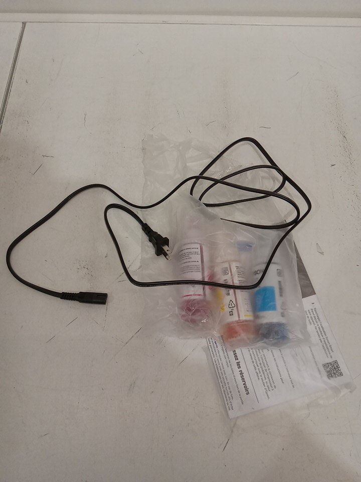 Item shows signs of being previously used prior to being returned. We attempted some basic maintenance (nozzle cleaning) but there is still some minor issue with the printing coming out perfect. It should be possible to fix this issue, however more of the maintenance procedures will need to be done and this will require more ink in order to do so. See attached photos.