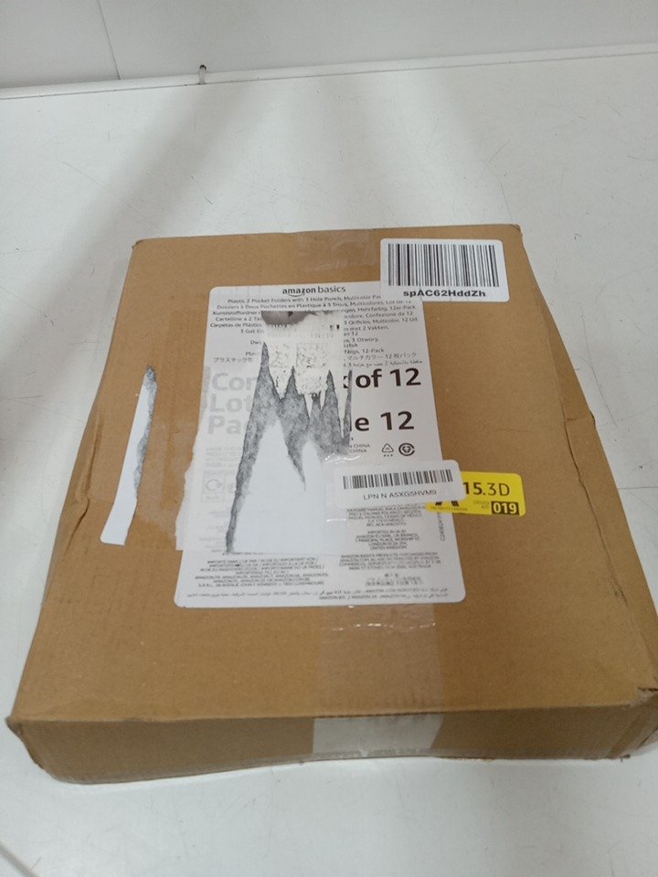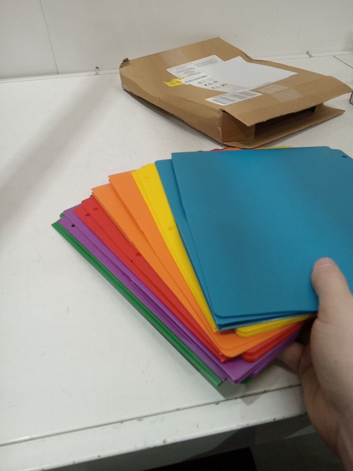 12pk amazonbasics plastic 3 hole punch folders with 2 pockets - letter size - multicolor