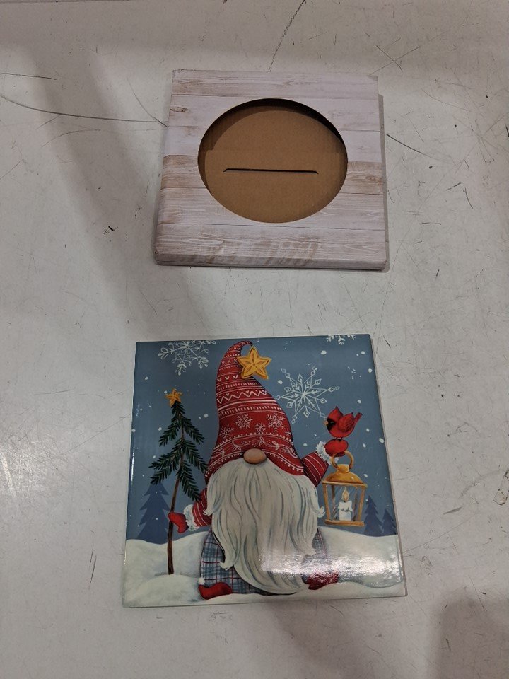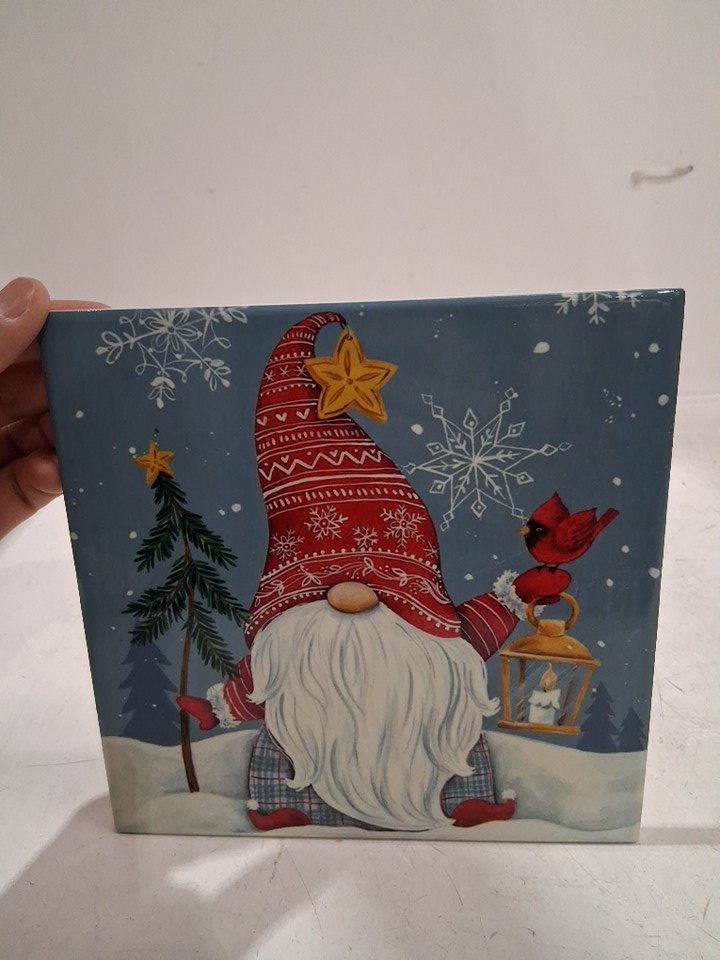 ih casa decor X'Mas Square Ceramic Trivet (Gnome) - 8'' - multicolor