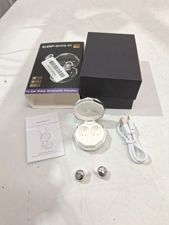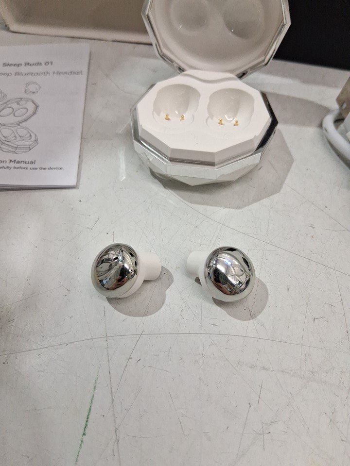 item is missing the silicone in-ear pieces but others can be used as replacements. item tested for power, bluetooth connectivity and function