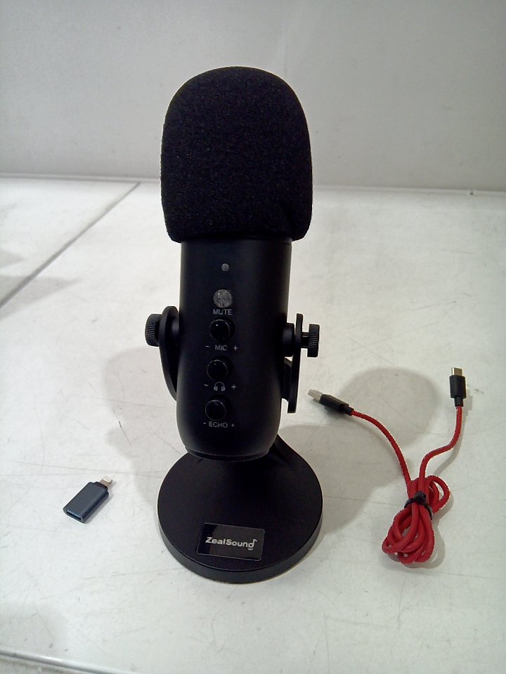 Ours is missing the USB-C adapter piece and the USB cable has been replaced with one of our own. Tested for power and sound input. (SEE PHOTOS)