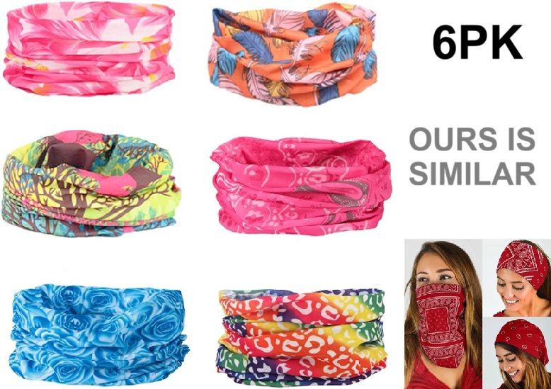 6pk seamless Breathable Neck and Head Tube bandana - multicolour