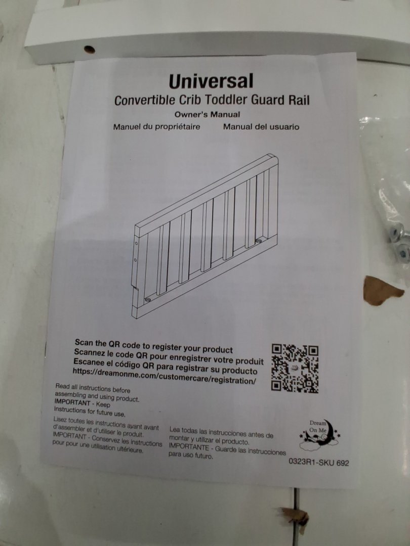 Dream On Me Universal Convertible Crib Toddler Guard Rail - 12" x 21" - white (model: 692)