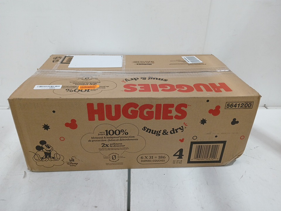 186pk huggies snug and dry diapers - size 4 - 22lb to 37lb - disney mickey mouse
