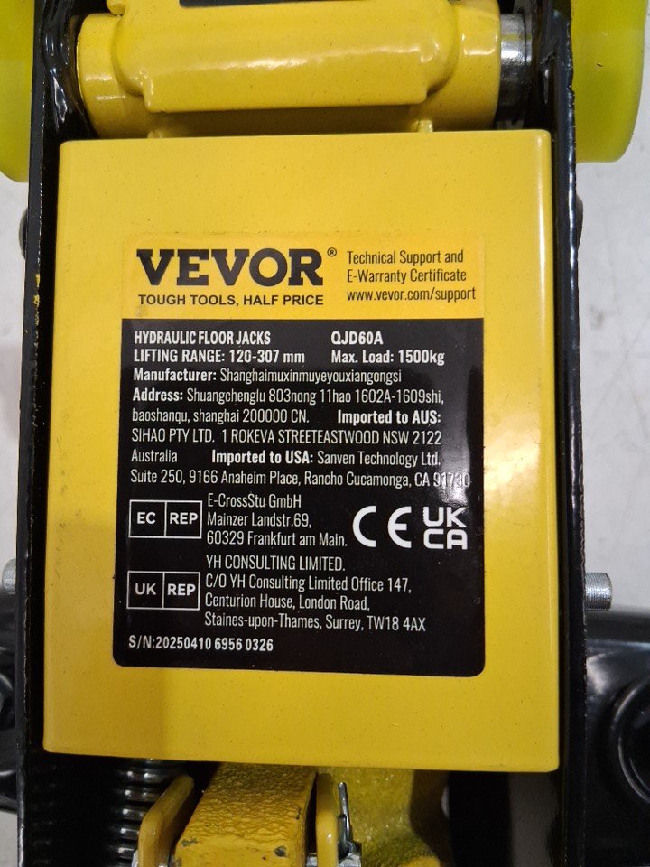 vevor heavy duty hydraulic floor car jack with 5500lb cap and 4.7" - 12.1" lifting height - yellow/black - (model: qjd60a)