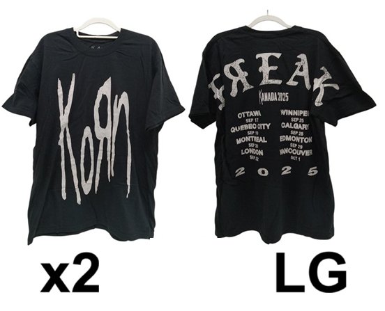 2 ADULT UNISEX KORN FREAK 2025 TOUR T SHIRT - LARGE - BLACK