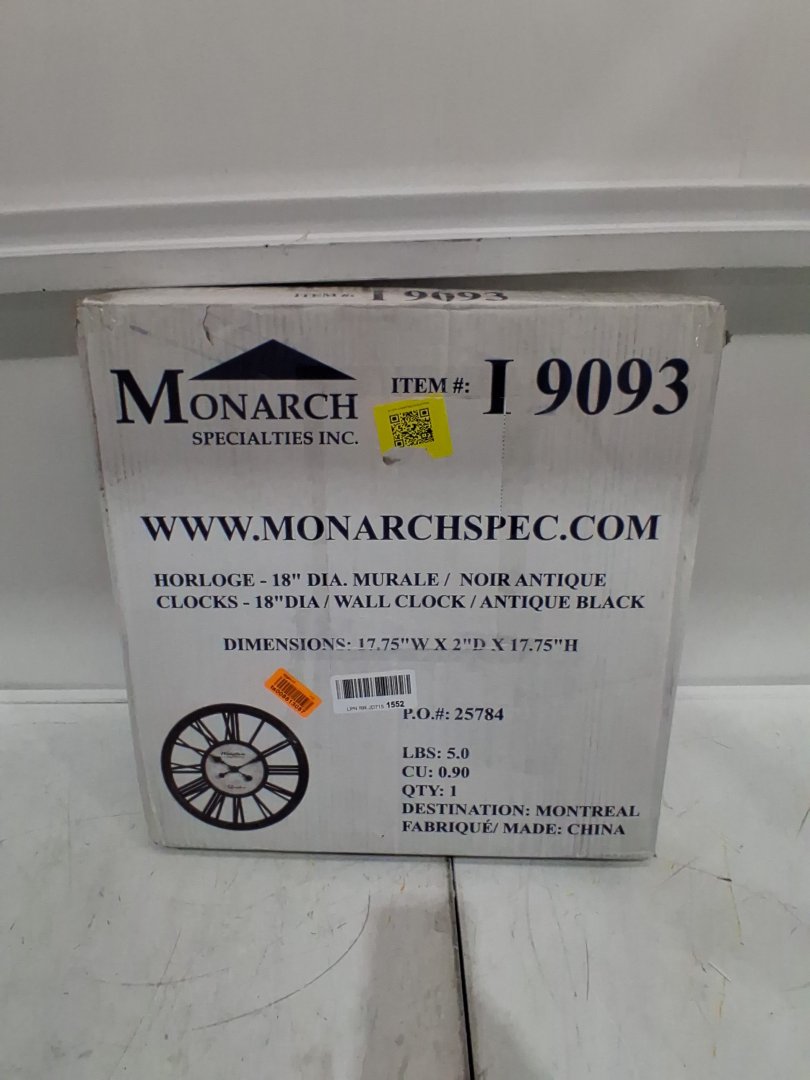 Monarch Specialties Clocks Round Wall Clock - 18" - Antique black