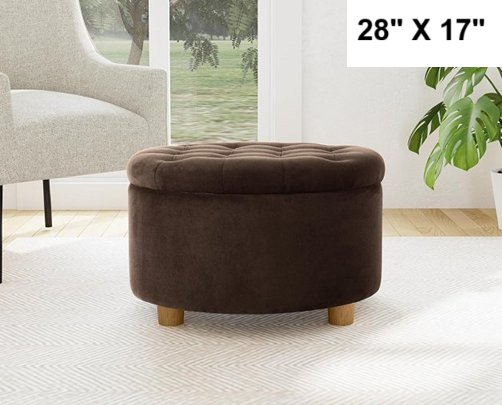OMEPOP LARGE BUTTON TUFTED WOVEN ROUND STORAGE OTTOMAN - 28"x17" - 250LB CAPACITY - chocolate brown - (model: k8686-b319)