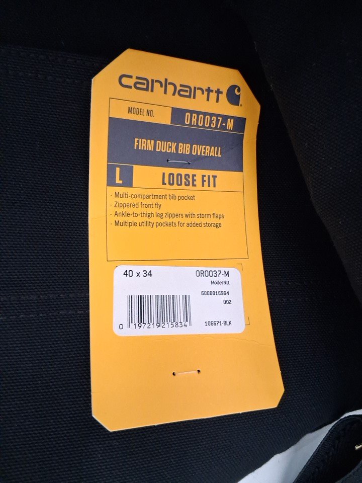 MEN'S CARHARTT RELAXED FIT DUCK BIB OVERALL - 40w x 34l - BLACK - (MODEL:0R0037-M)