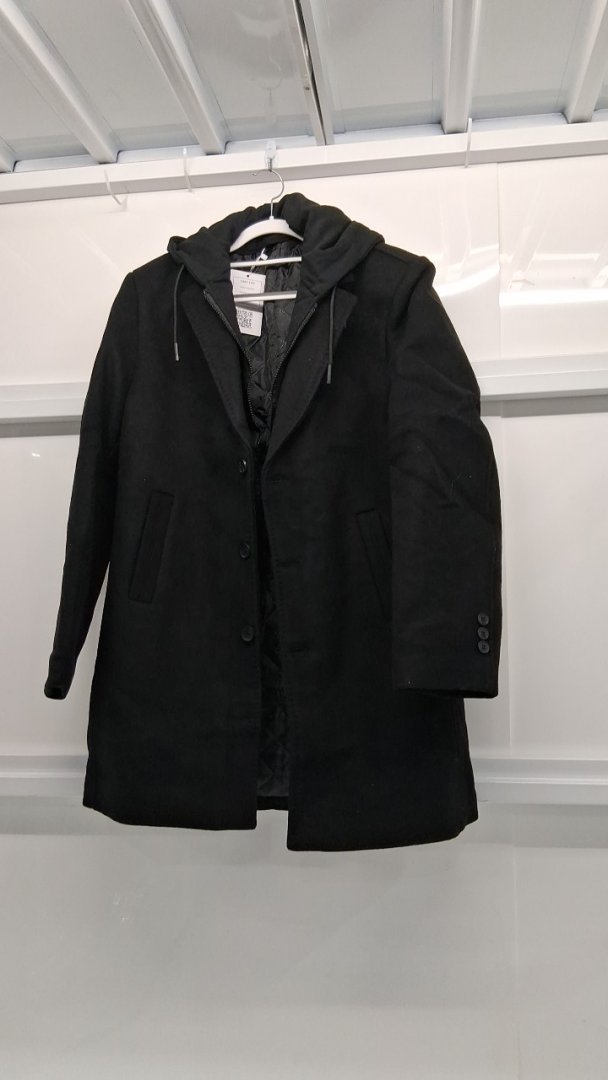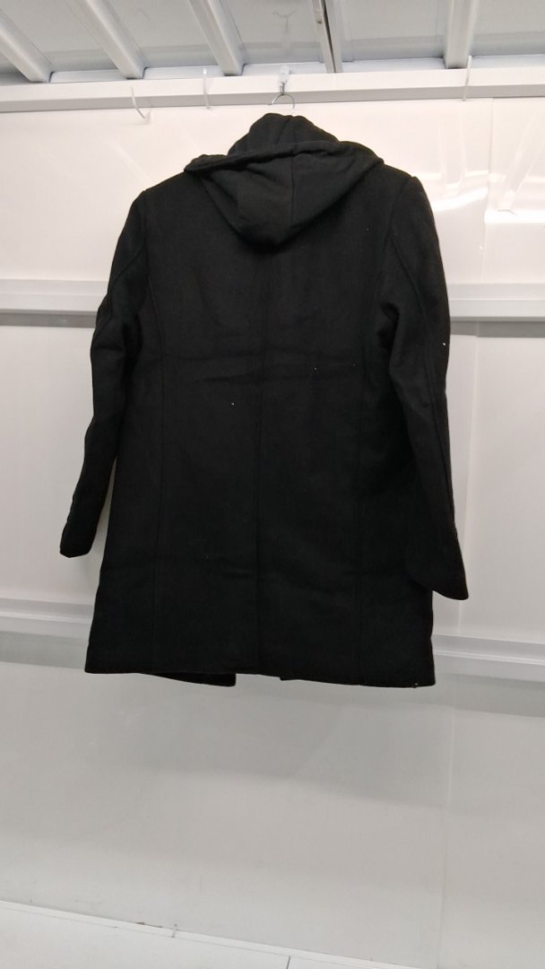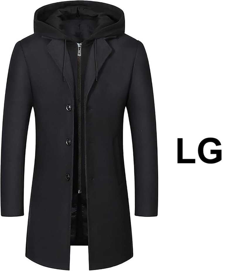 Men's Wool Trench Coat with Removable Hood - Large - Black
