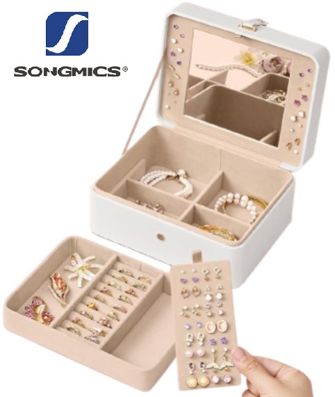 SONGMICS 2-TIER jewelry box with mirror - white (model: jbc200w01)