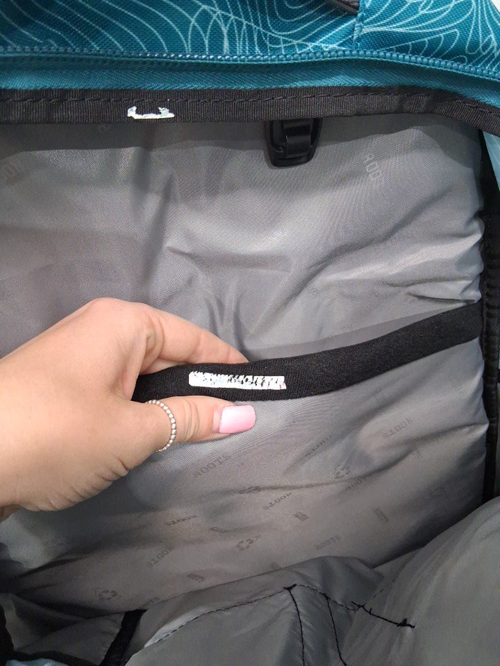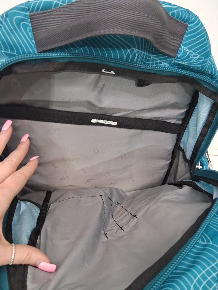 some white sticker residue inside backpack. some dirt on bottom from previous use.